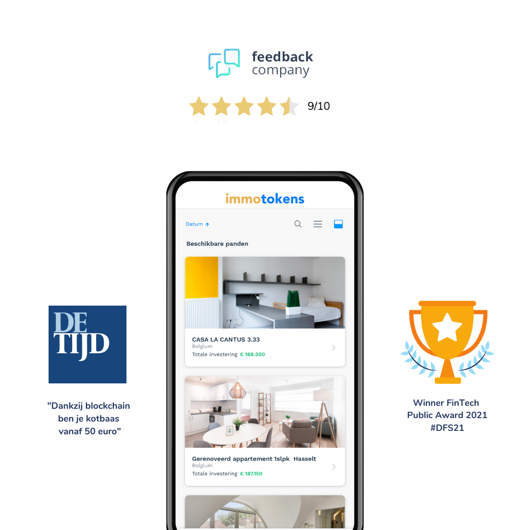Immotokens is een vernieuwende manier om samen in vastgoed te investeren. Je ontvangt net zoals bij een klassieke vastgoedinvesteringen elke maand jouw deel van de huuropbrengsten en na enkele jaren krijg je jouw deel van de verkoopwaarde!*